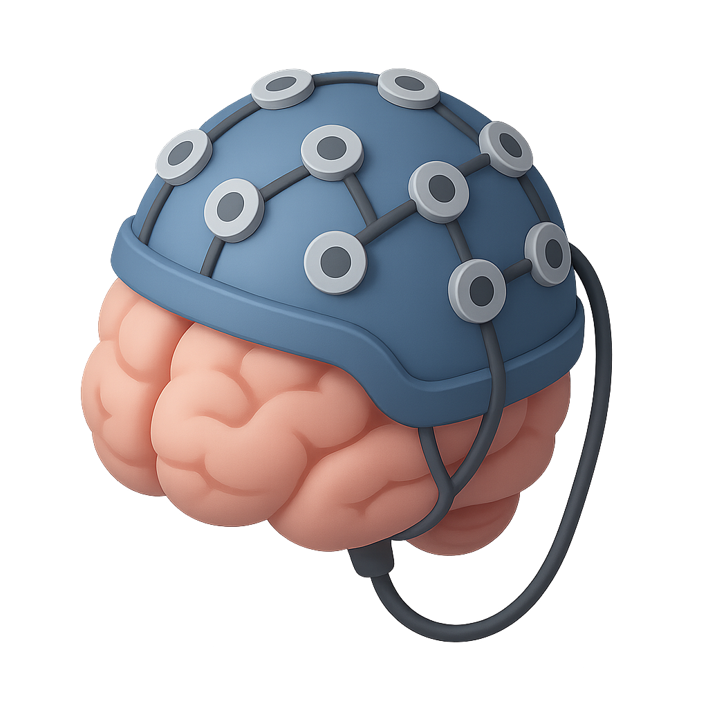 Stylized 3D EEG Brain Cap Icon with Isometric Perspective