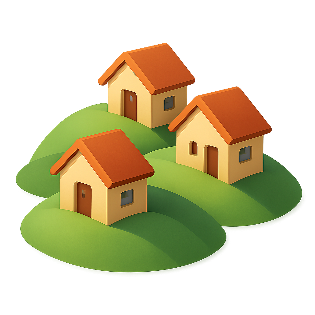 Charming 3D Houses Nestled on Rolling Hills