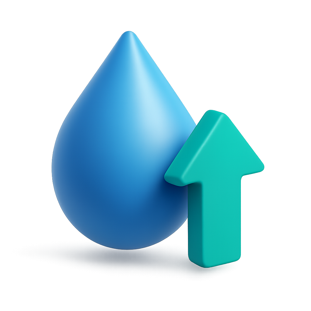 3D Water Drop Icon with Upward Arrow Design