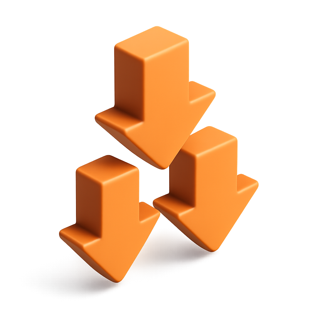 Stylish 3D Downward Arrows Icon Design