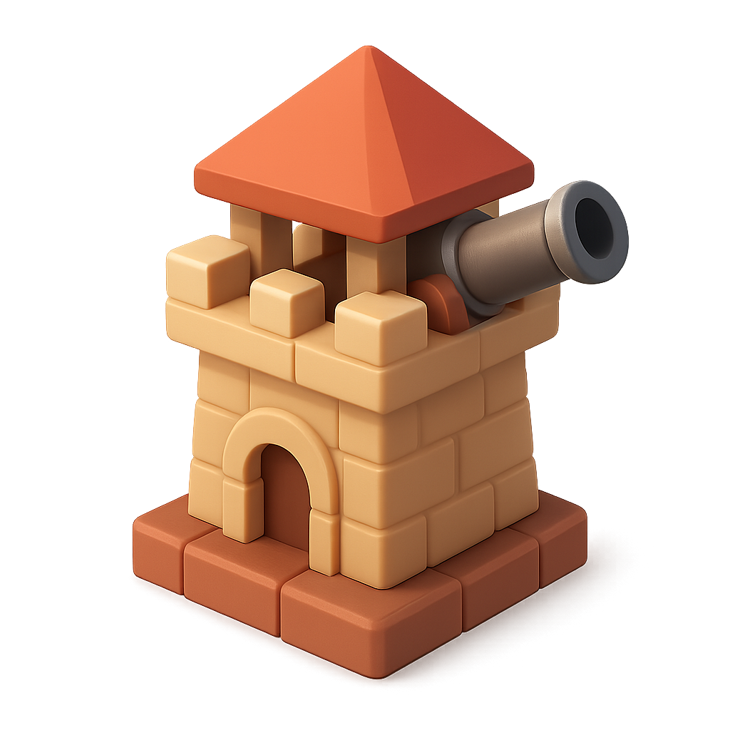 Stylized 3D Tower Icon with Cannon for Game Design