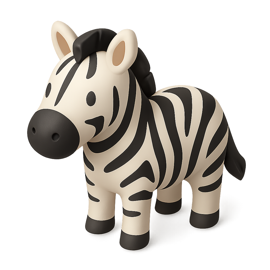/Collection: /by davooda/Type: PNG/A stylized 3D zebra icon featuring distinct black and white stripes. The icon is presented in a three-quarter view on a transparent background, showcasing a playful and friendly design.