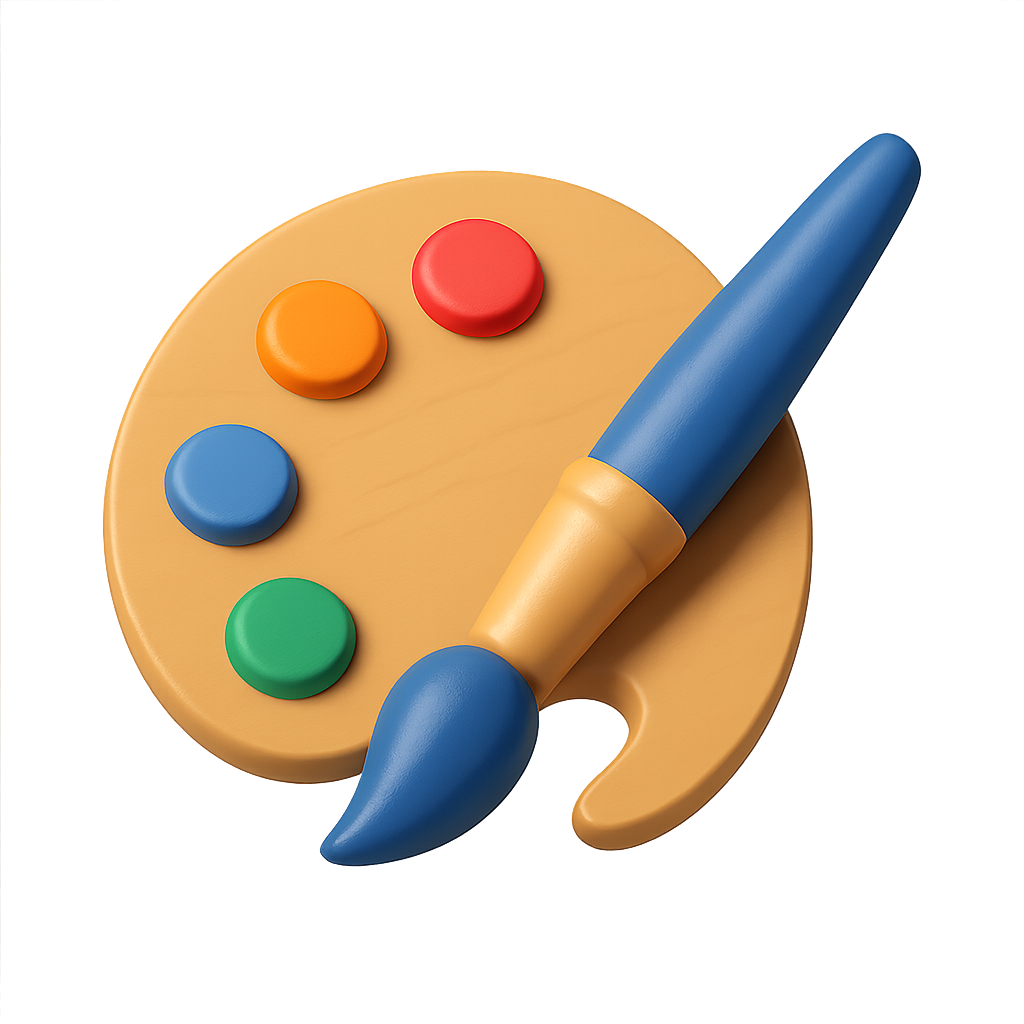 Colorful 3D Art Supplies: Palette and Brush Icon