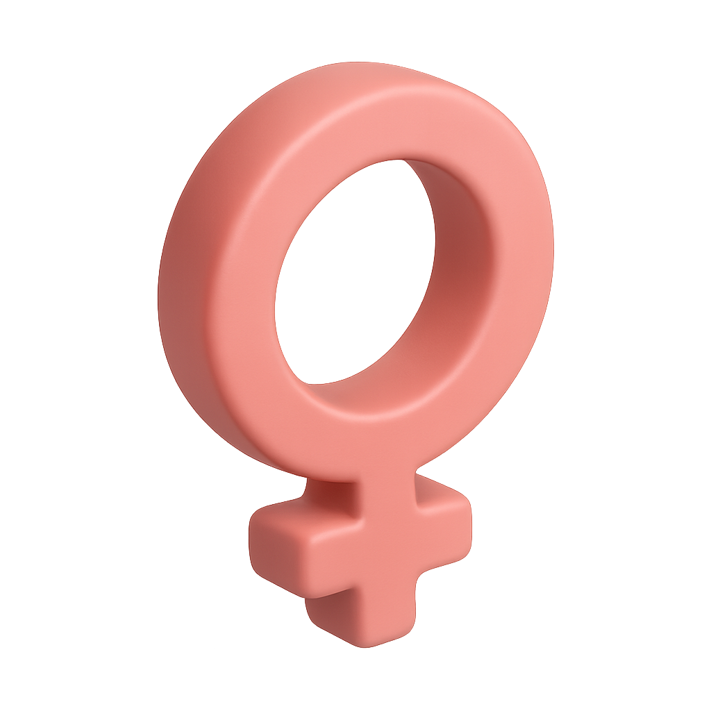 /Collection: /by davooda/Type: PNG/A stylized 3D representation of the female gender symbol, featuring a smooth, volumetric design. The icon is presented in a three-quarter view with a soft coral color against a gradient background.