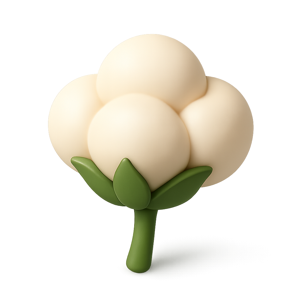 Stylized 3D Cotton Plant Icon in Isometric View