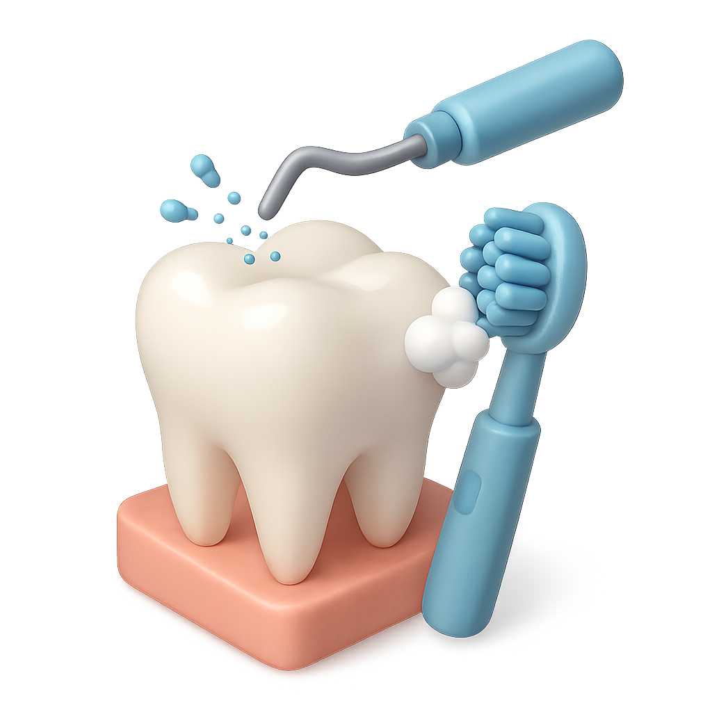 3D Dental Cleaning Icon with Tooth and Equipment