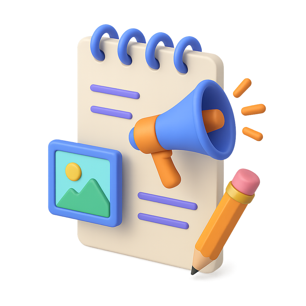 Stylish 3D Content Marketing Icon with Notepad and Elements