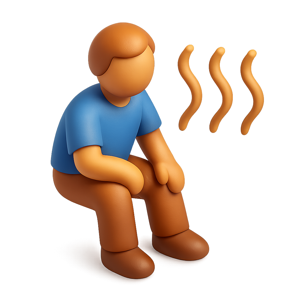 /Collection: /by davooda/Type: PNG/This image features a stylized 3D icon of a person sitting, with heat waves depicted in a flowing design. The character has a simplistic design with a blue shirt and brown pants, set against a warm gradient background.