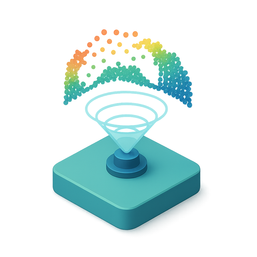 3D LiDAR Icon with Colorful Point Cloud Visualization