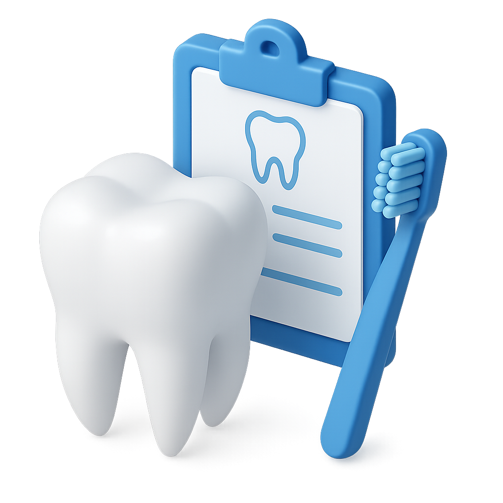 3D Dental Icon Featuring Tooth and Clipboard with Toothbrush