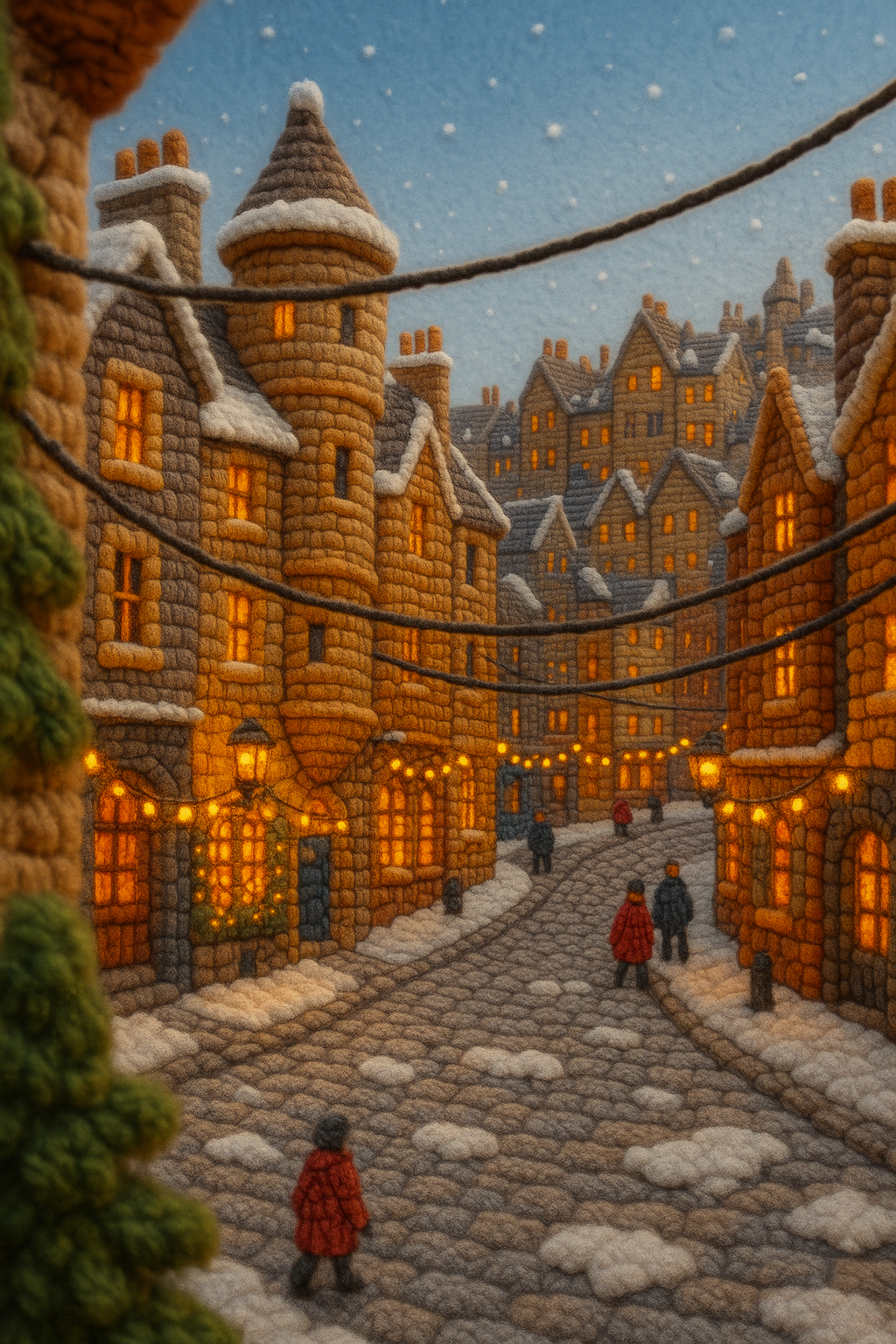 Woolly Edinburgh Winter Scene with Cozy Holiday Vibe