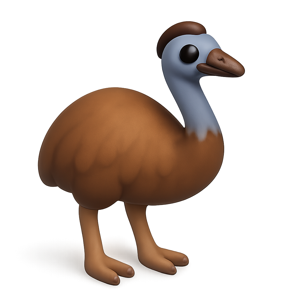 3D Emu Icon with Isometric Perspective and Volumetric Feel