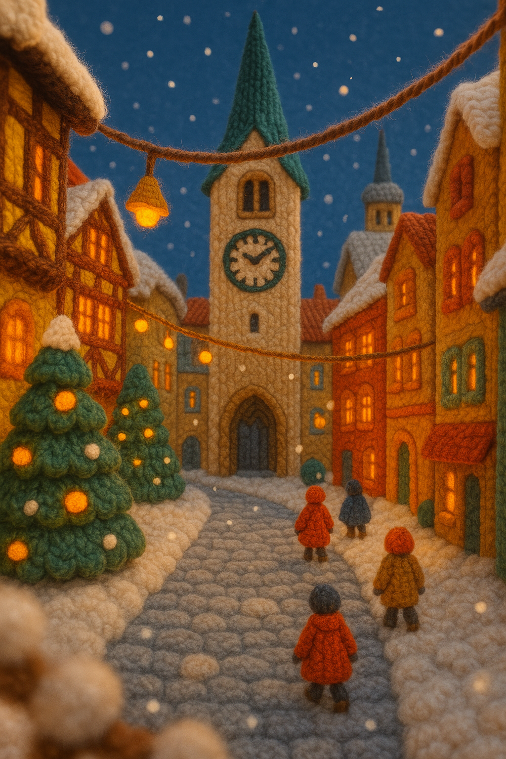 Whimsical Christmas Scene in Bremen with Woolen Textures