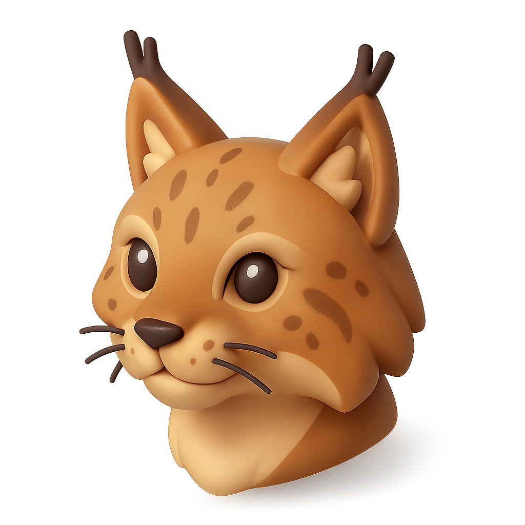 3D Lynx Icon with Tufted Ears in Isometric View