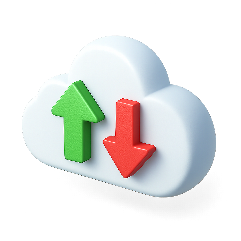 3D Cloud Exchange Icon with Upload and Download Arrows