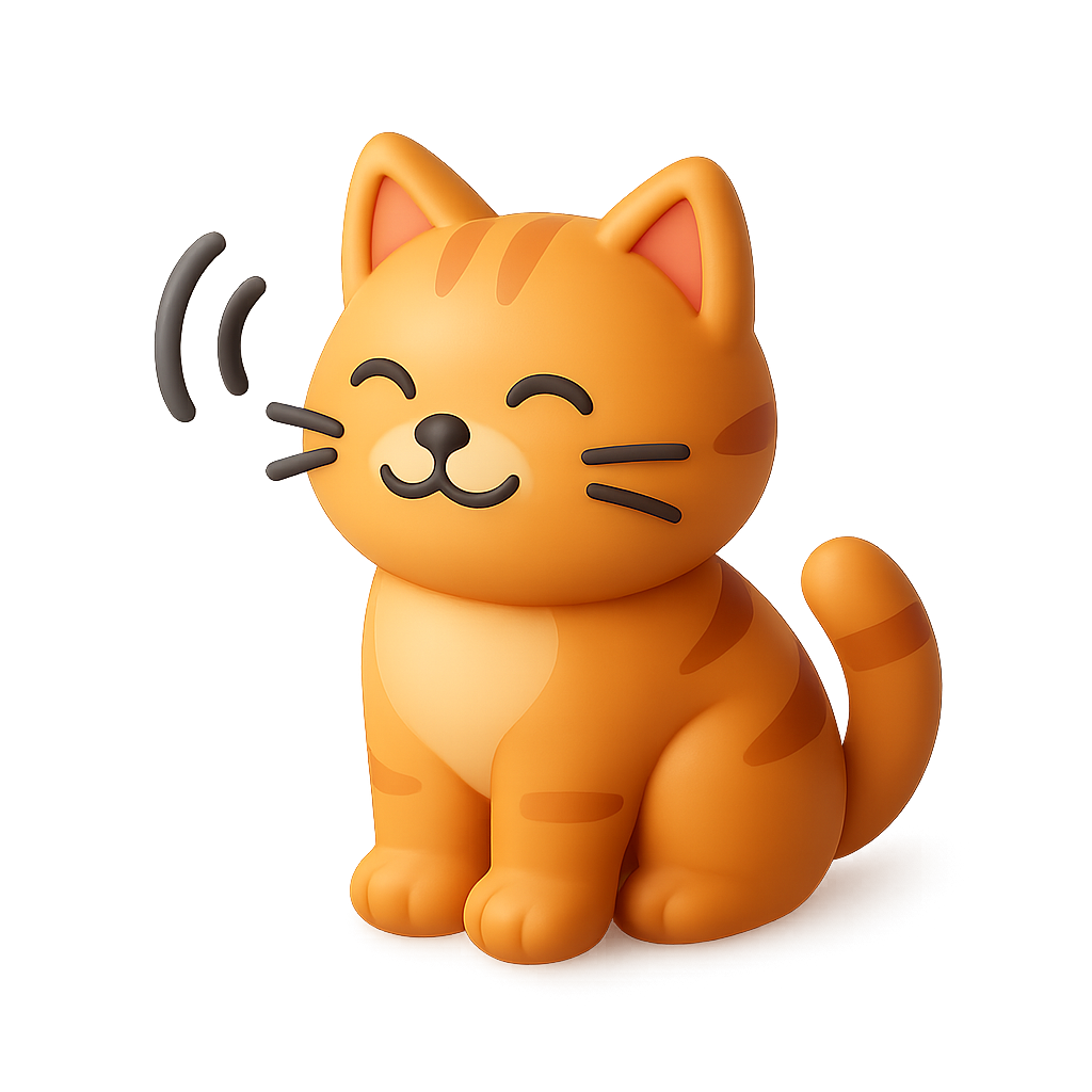 A cute 3D icon of an orange domestic cat, depicted in a three-quarter view with a purring expression. The design features a transparent background, enhancing its volumetric look.