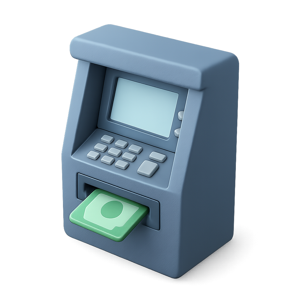 Stylized 3D ATM Icon with Transparent Background