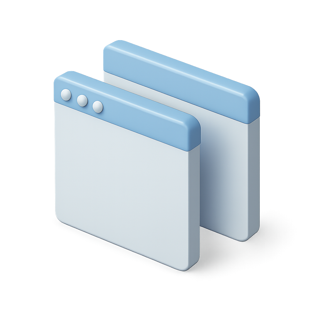 Stylized 3D Overlapping Windows Icon with Isometric Design