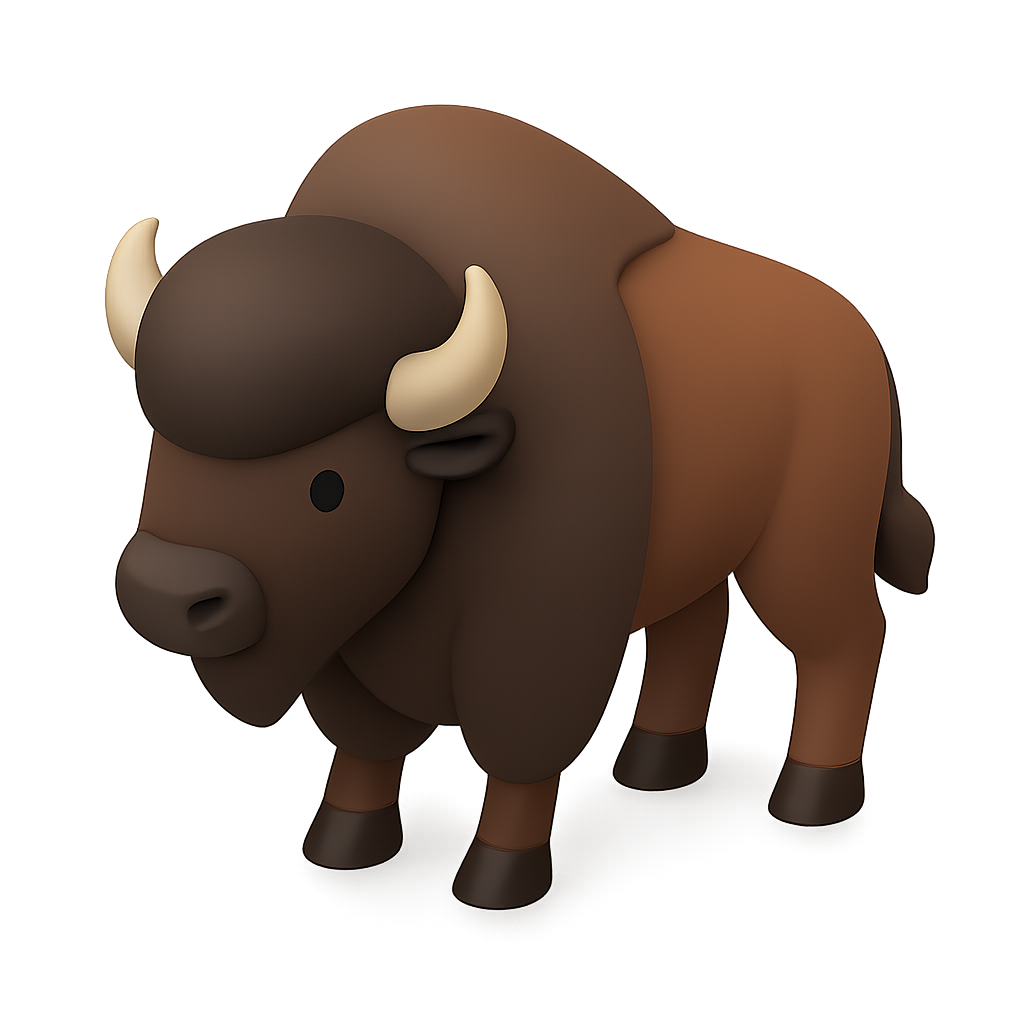 3D Bison Icon with Isometric Design and Volumetric Feel