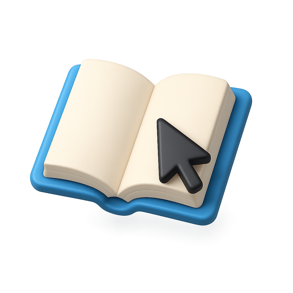 3D Open Book with Cursor Icon for Digital Use