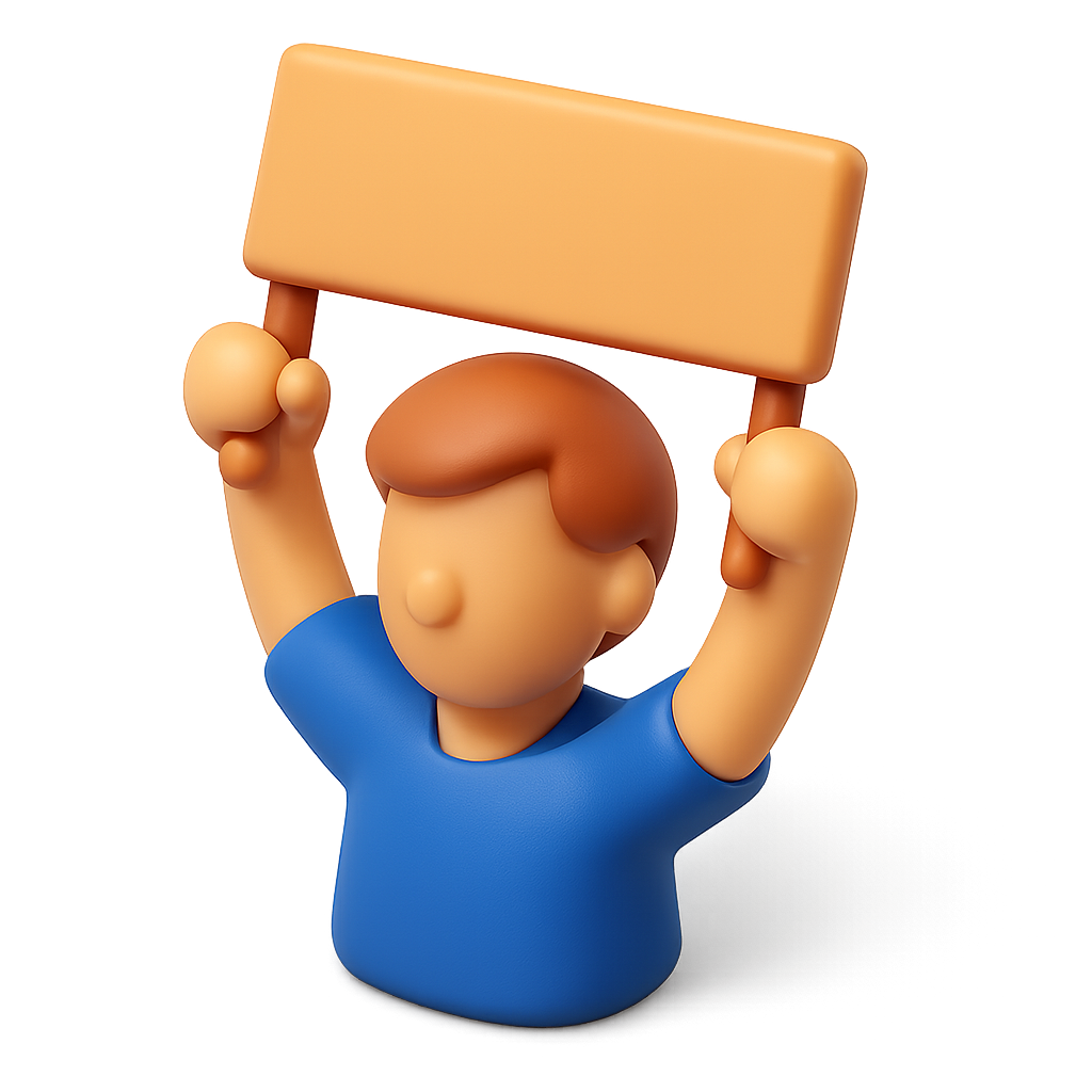Stylized 3D Protester Icon with Sign