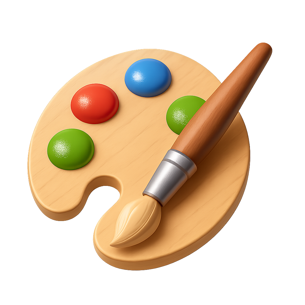 Colorful 3D Paint Palette with Brush Icon