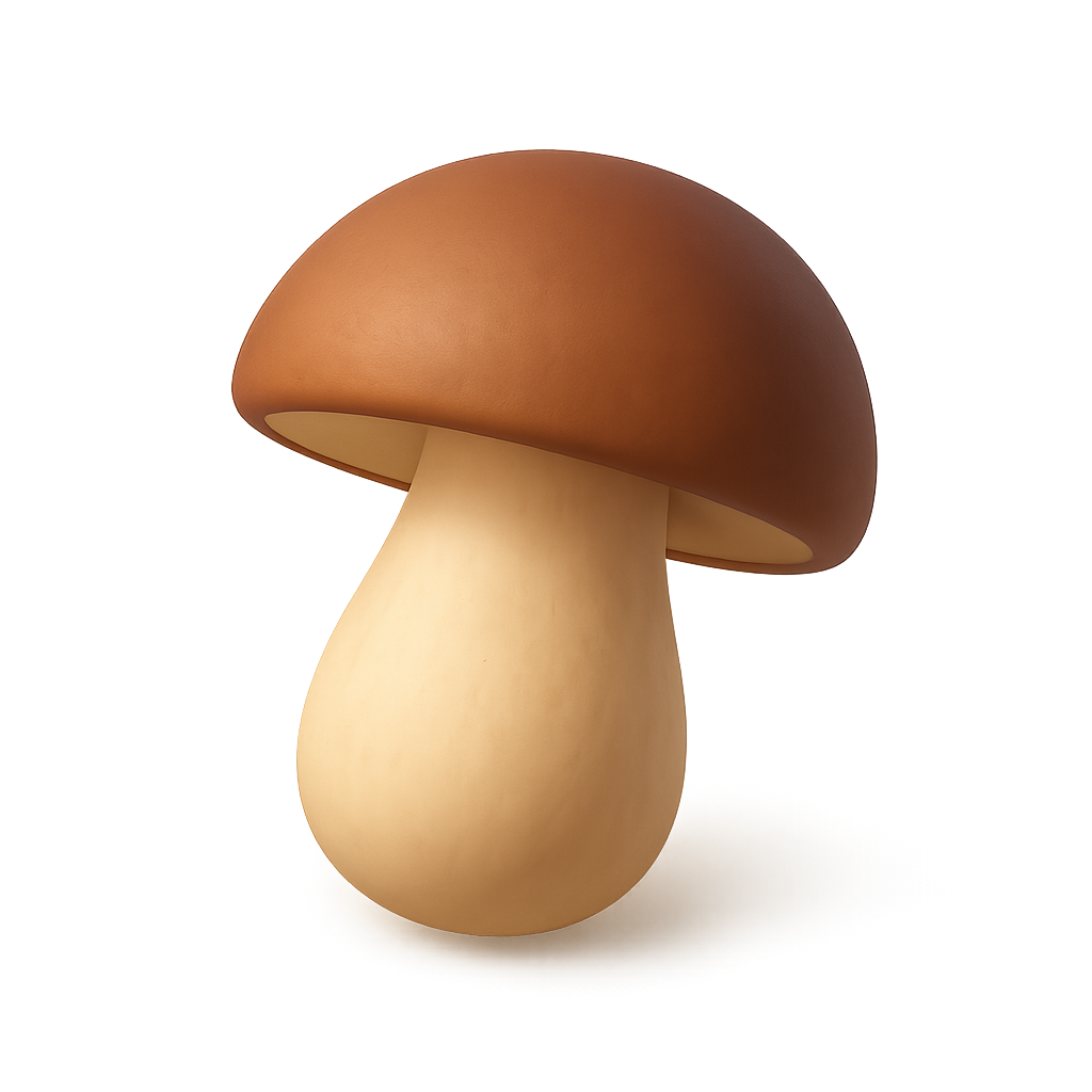 Stylized 3D Porcini Mushroom Icon with Isometric View