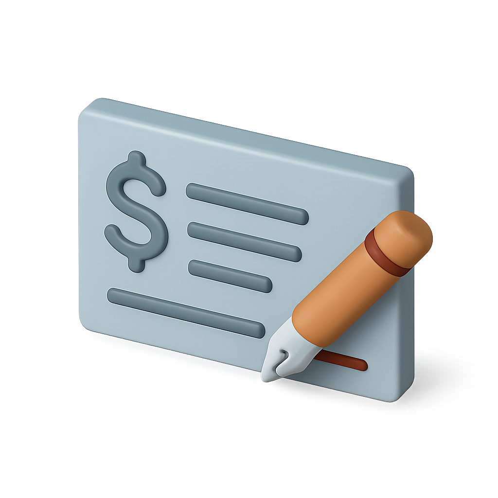 Stylized 3D Bank Draft Icon with Pen Illustration