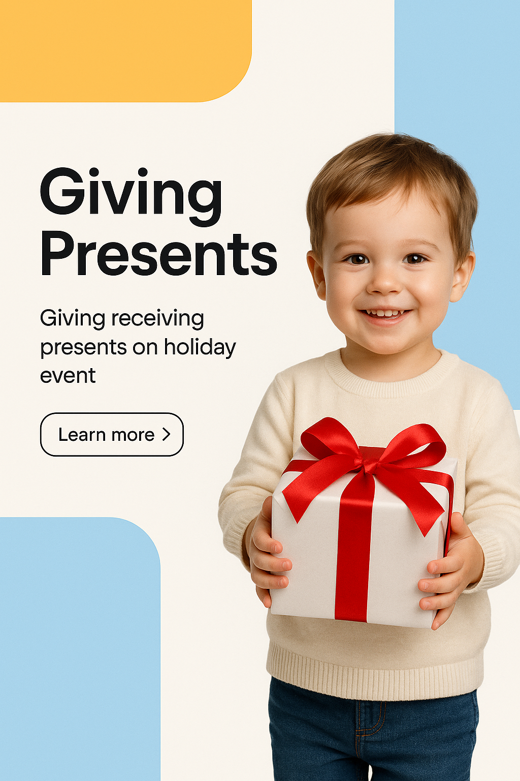 Delightful Child Holding Gift Box with Red Ribbon