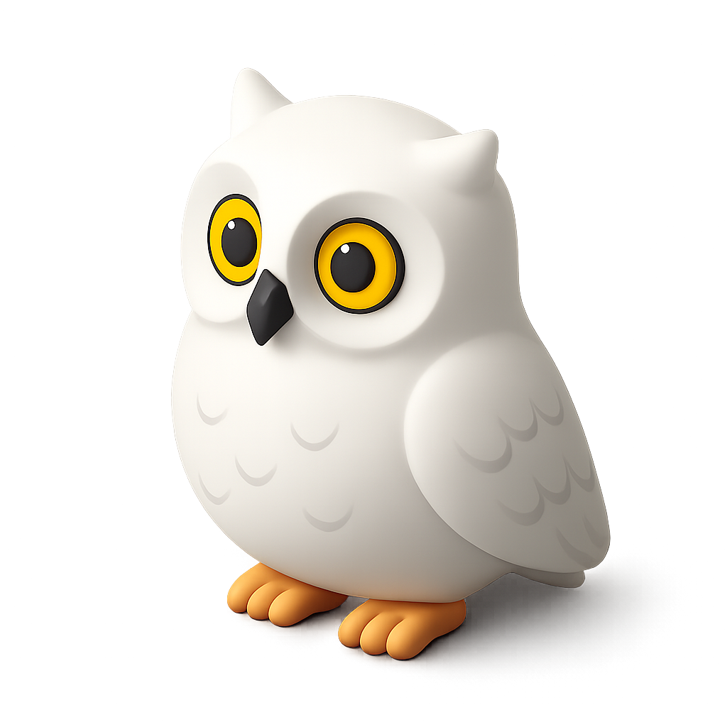 3D Snowy Owl Icon with Isometric Design
