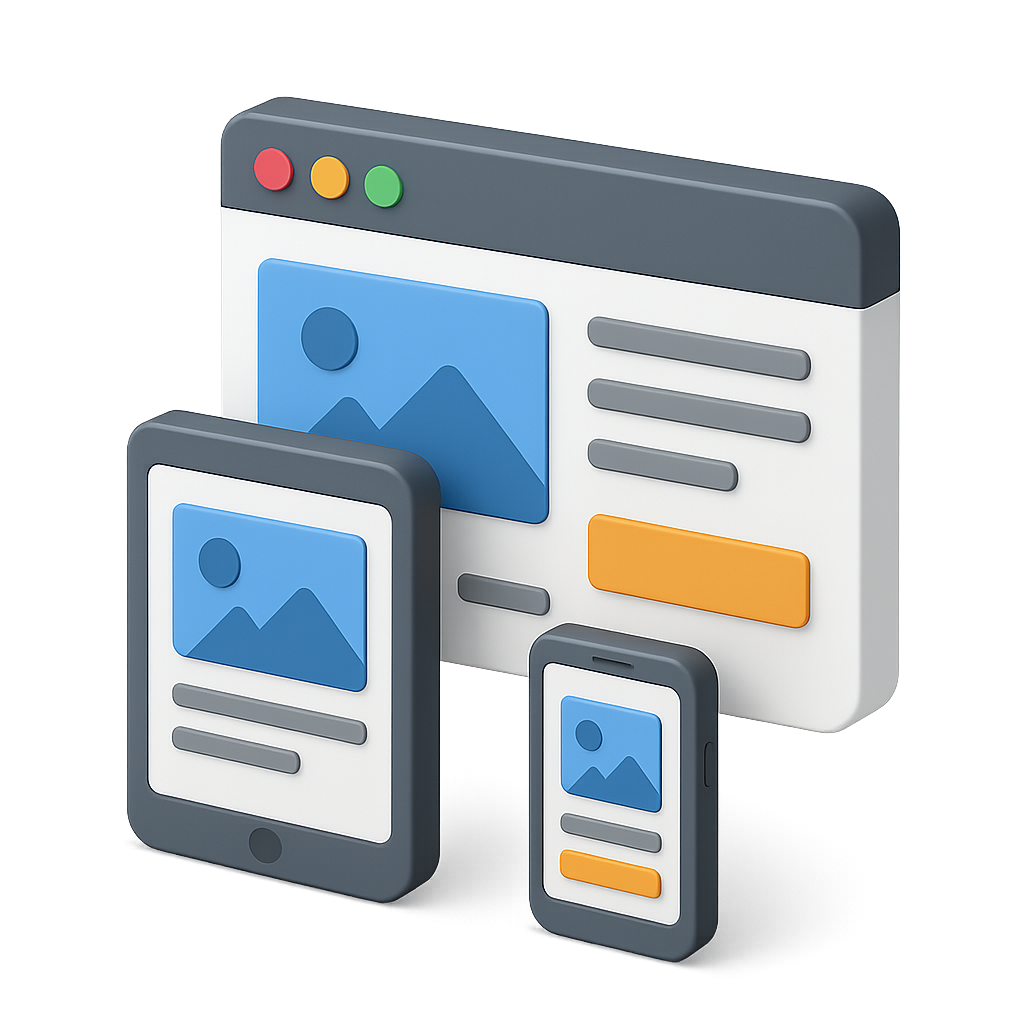 /Collection: /by davooda/Type: PNG/A visually appealing 3D icon set depicting a computer monitor, tablet, and smartphone, showcasing responsive web design elements. The design features a transparent background and an isometric view, enhancing its modern aesthetic.