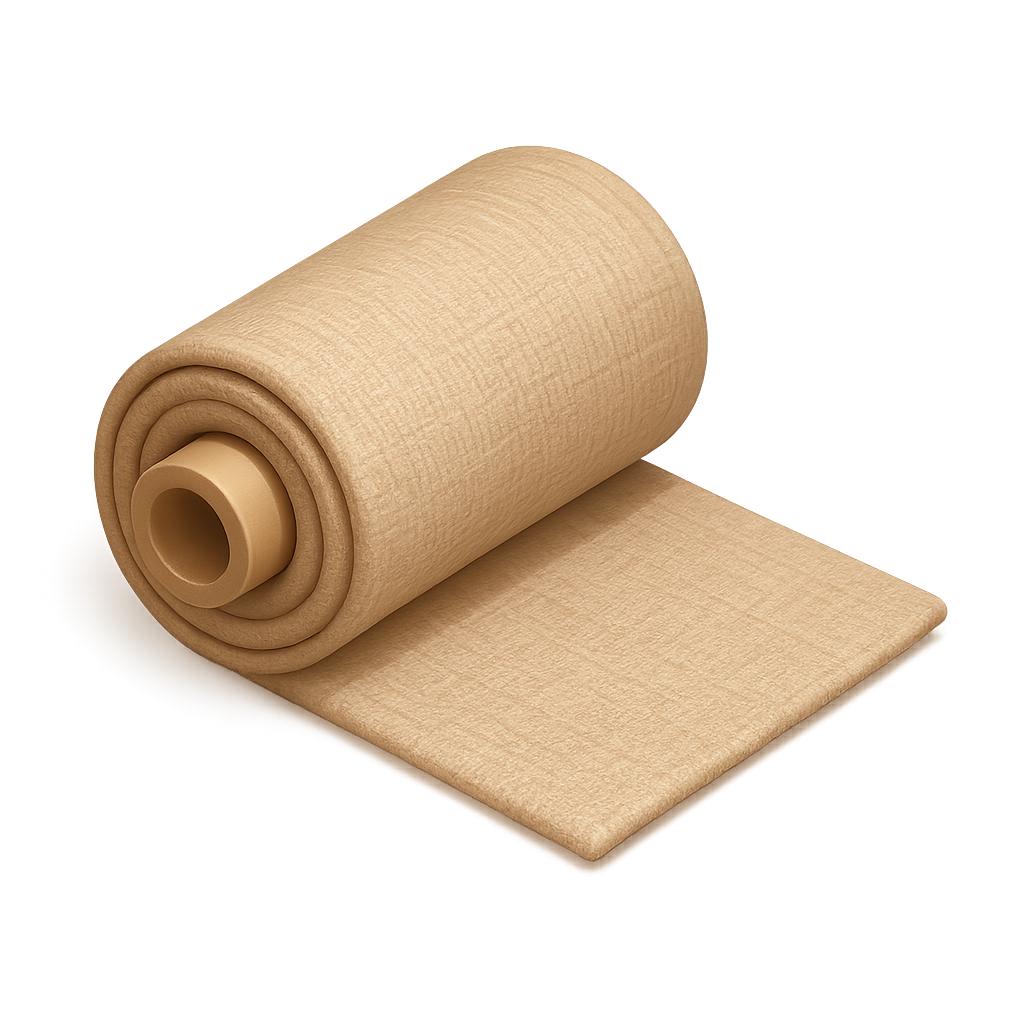 A visually appealing 3D icon of a rolled linen bolt fabric, shown in a three-quarter isometric view against a smooth gradient background. The texture of the fabric is detailed, enhancing its volumetric appearance.
