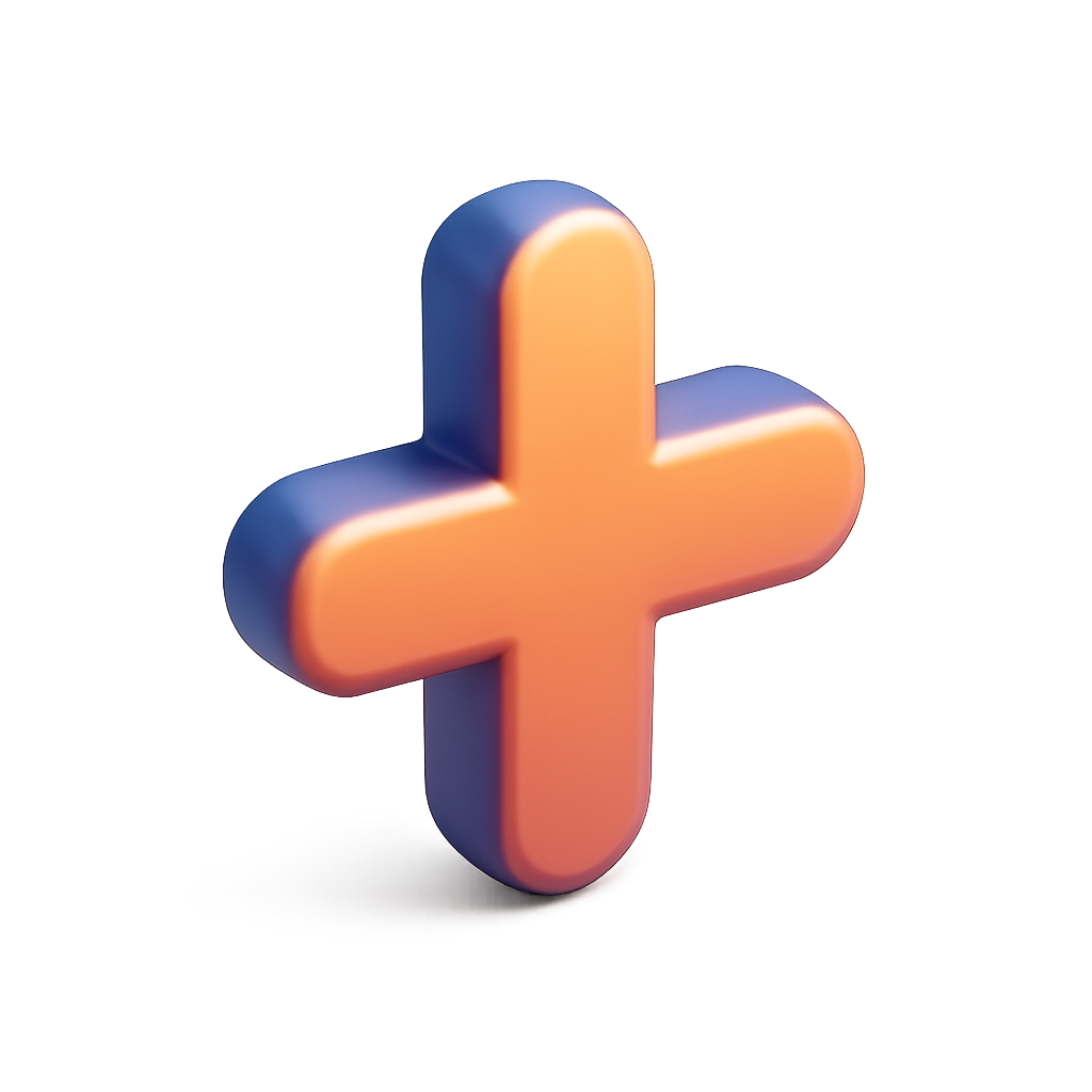 Colorful 3D Plus Icon with Figures