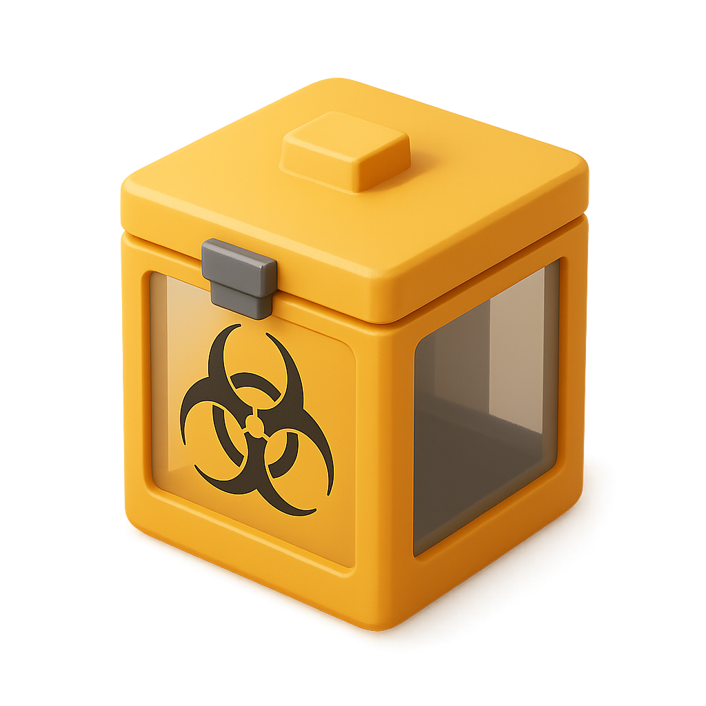 /Collection: /by davooda/Type: PNG/This image features a 3D biohazard containment unit, designed with a yellow exterior and a black biohazard symbol. The icon is shown in a three-quarter view with a transparent background, showcasing a modern and volumetric style.