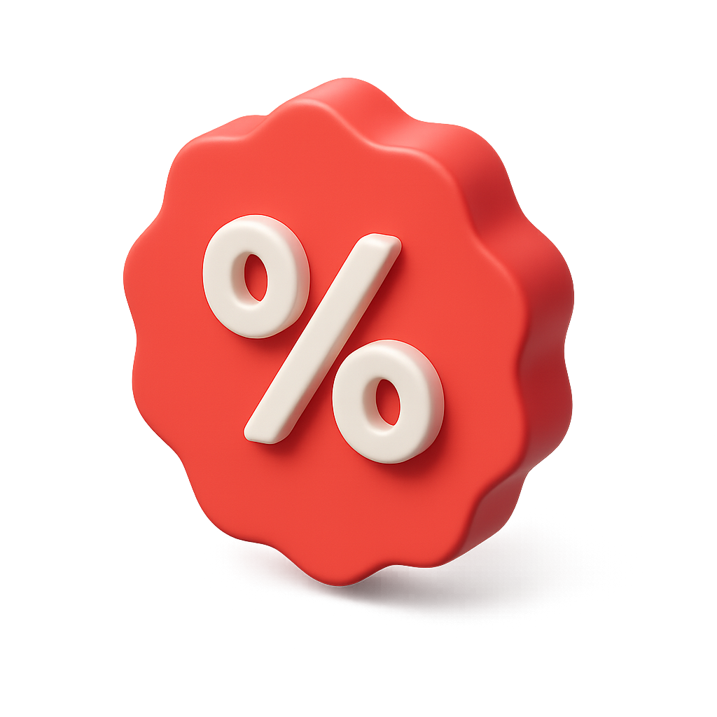 3D Discount Badge with Percentage Icon