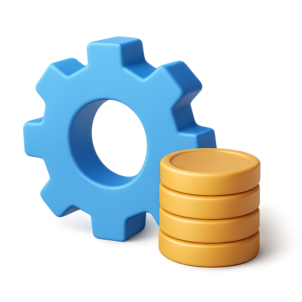 Colorful 3D Gear and Coins Icon in Isometric View