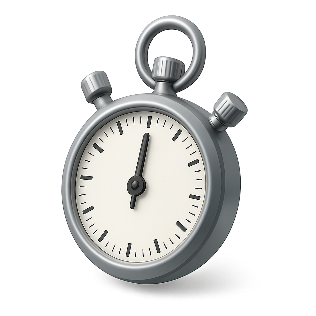 /Collection: /by davooda/Type: PNG/A modern 3D stopwatch icon depicted in a three-quarter view, showcasing a sleek metallic finish and an elegant design. The stopwatch features clear markings and a visible second hand, set against a subtle gradient background.