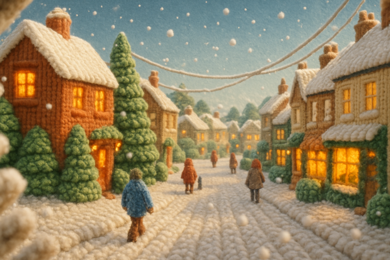 Charming Winter Village Scene with Knitted Aesthetic