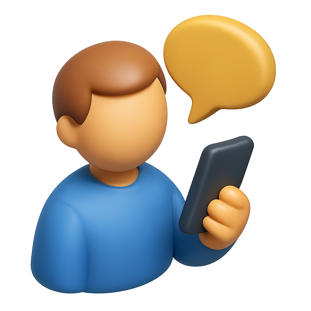 3D Icon of Person Holding Device with Speech Bubble
