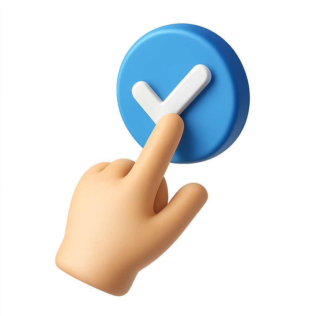 3D Hand Touching a Checkmark Icon in Isometric View