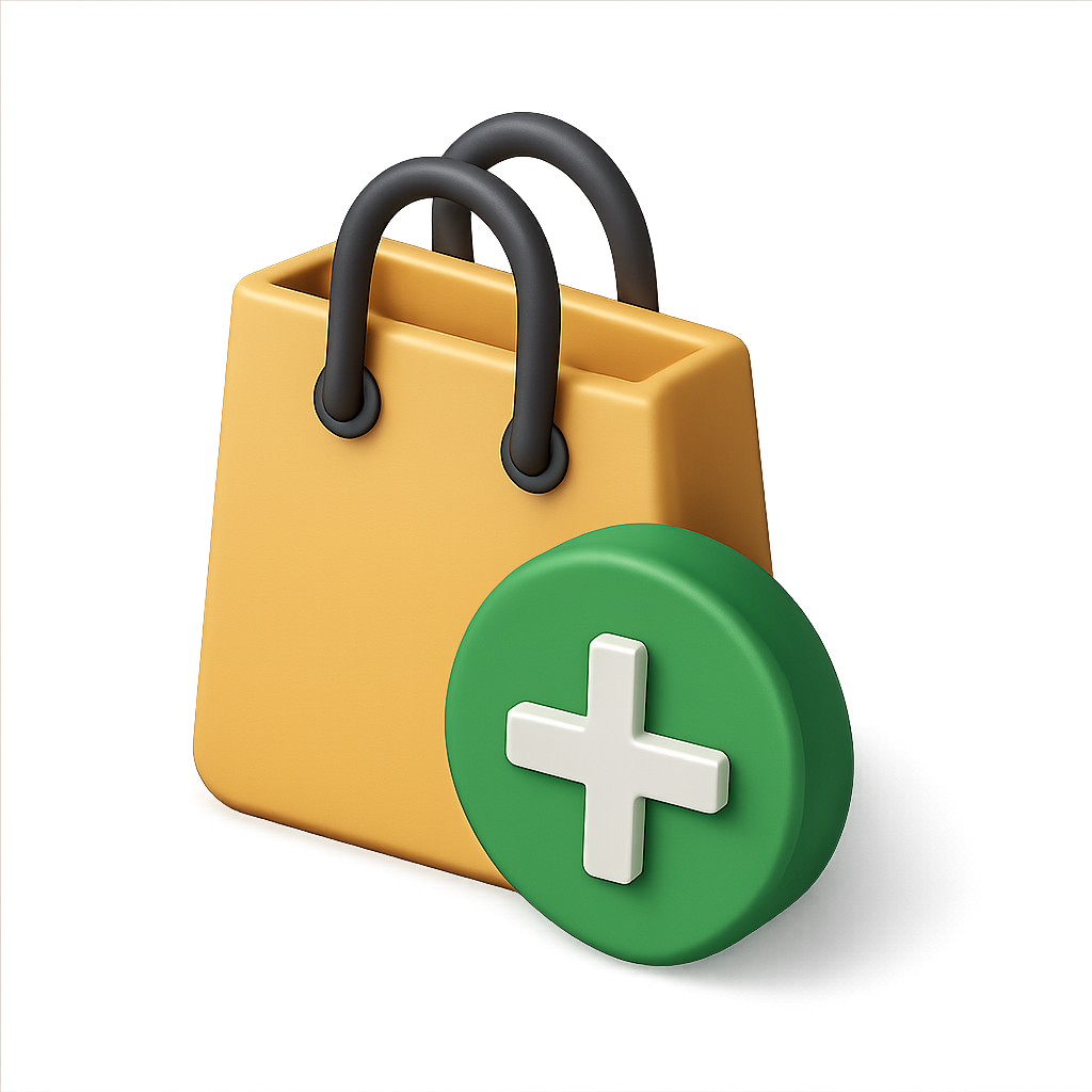 Stylized 3D Shopping Bag and Plus Icon Representation