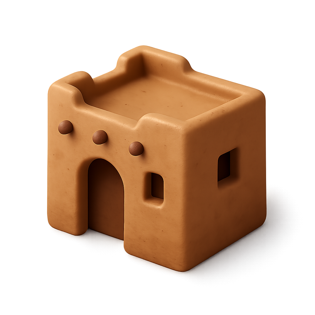 Stylized 3D Adobe House Icon with Isometric View