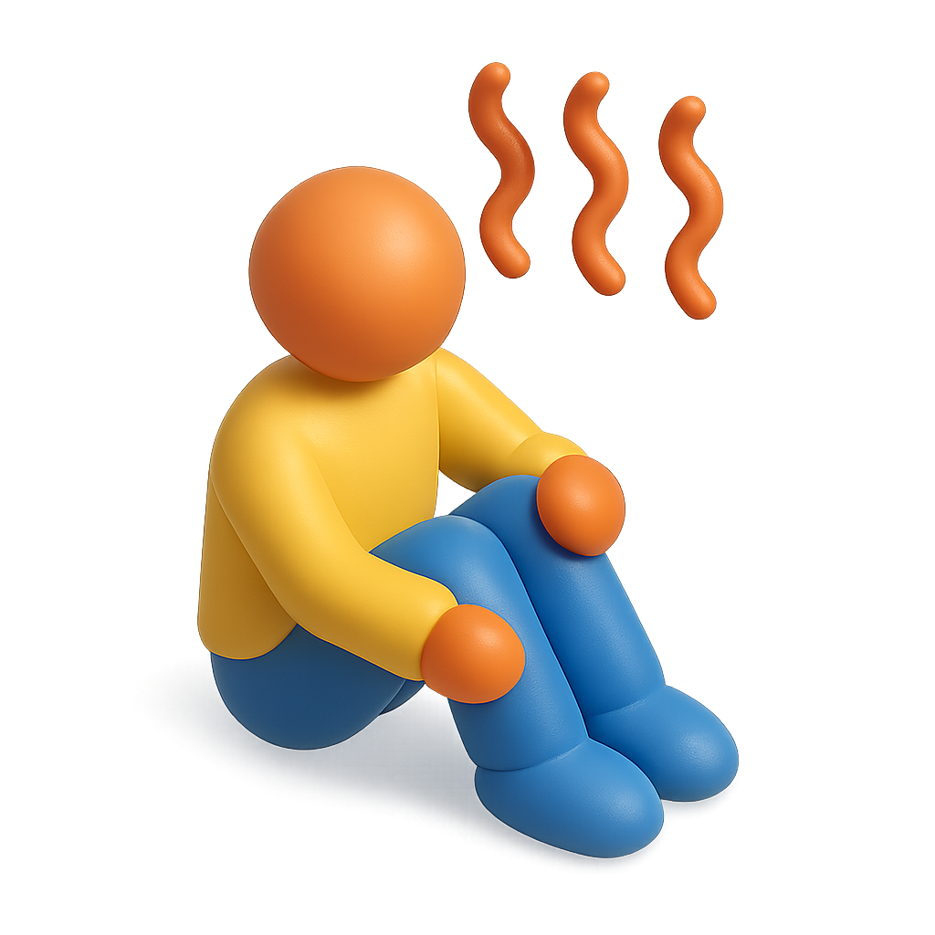 This image features a 3D icon of a stylized person sitting down, with heat waves illustrated above. The character is depicted in vibrant colors, showcasing a warm, inviting tone.
