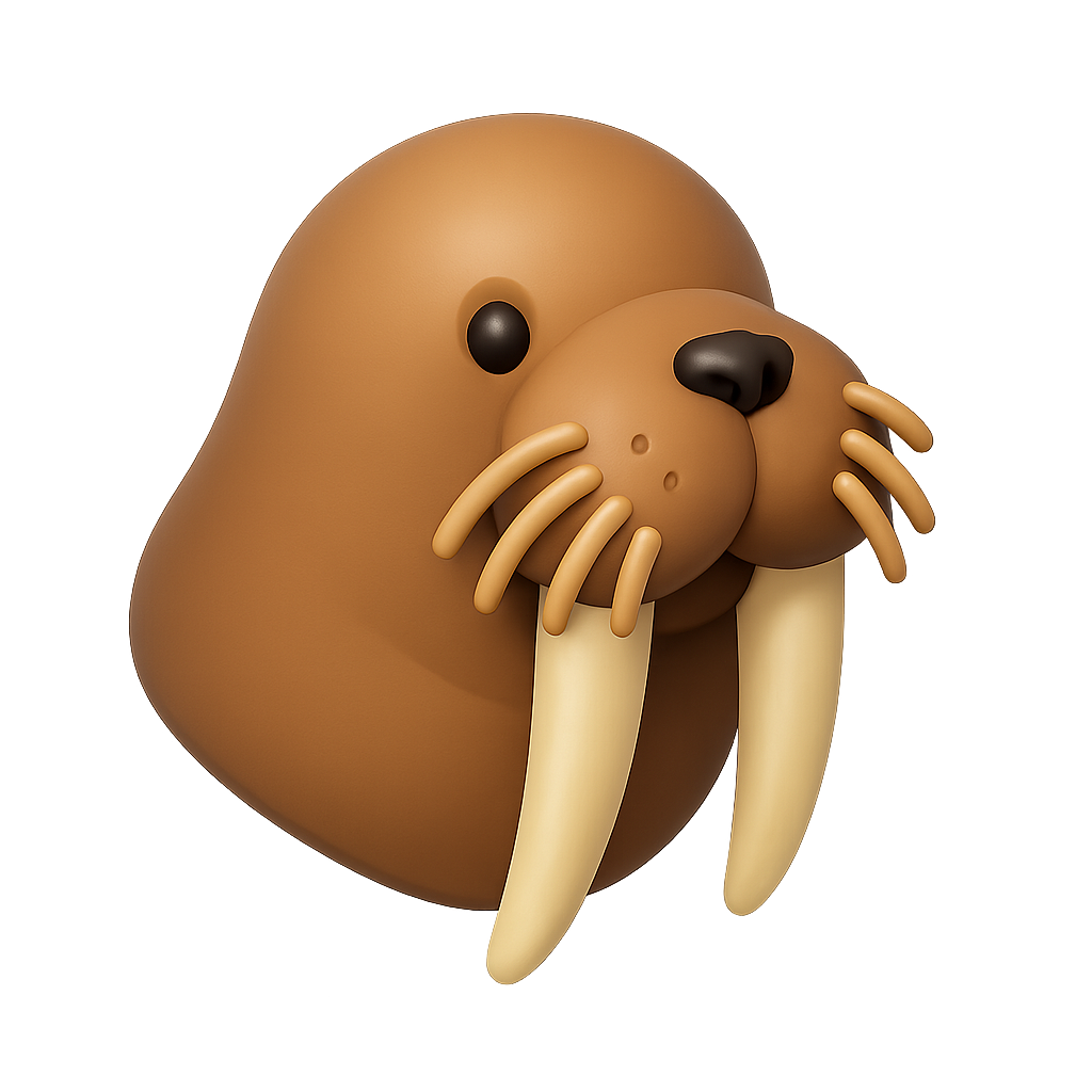 Stylized 3D Walrus Icon with Tusk and Whiskers
