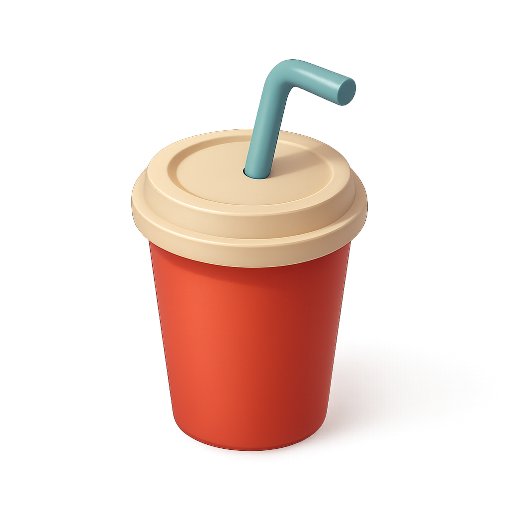 Stylized 3D Beverage Icon with Straw in Isometric View