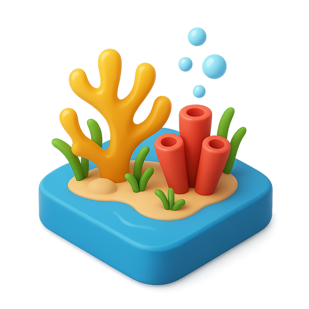 3D Icon of a Vibrant Barrier Reef with Coral and Bubbles