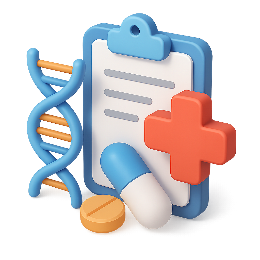 3D Medical Achievements Icon with DNA and Prescription Pad