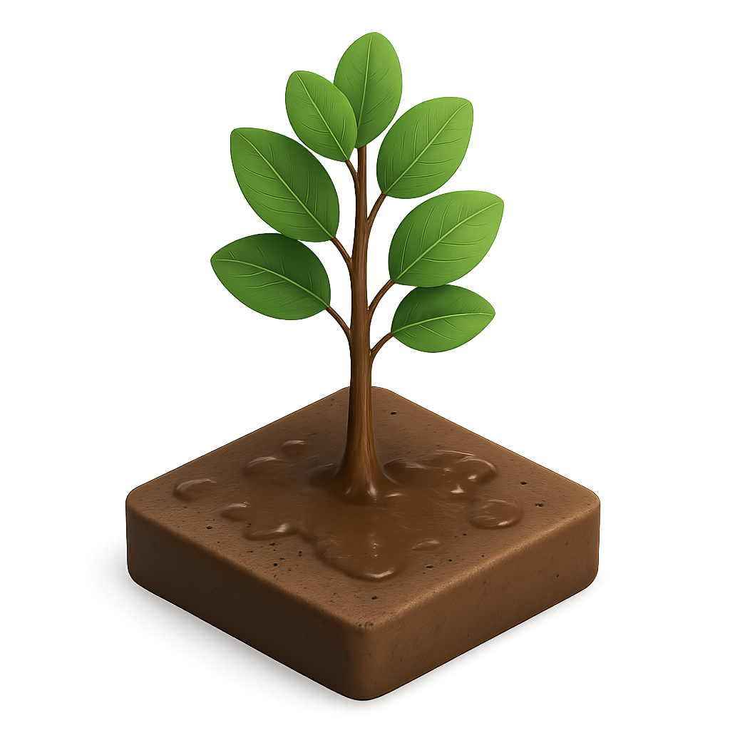 Stylized 3D Icon of Fertile Soil with Sprouting Plants