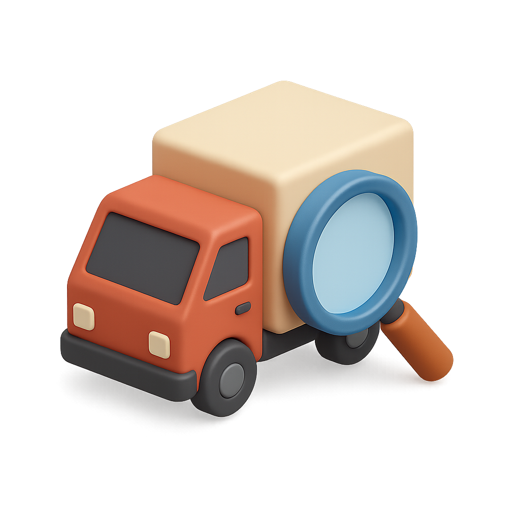 3D Delivery Truck Icon with Magnifying Glass in Isometric View