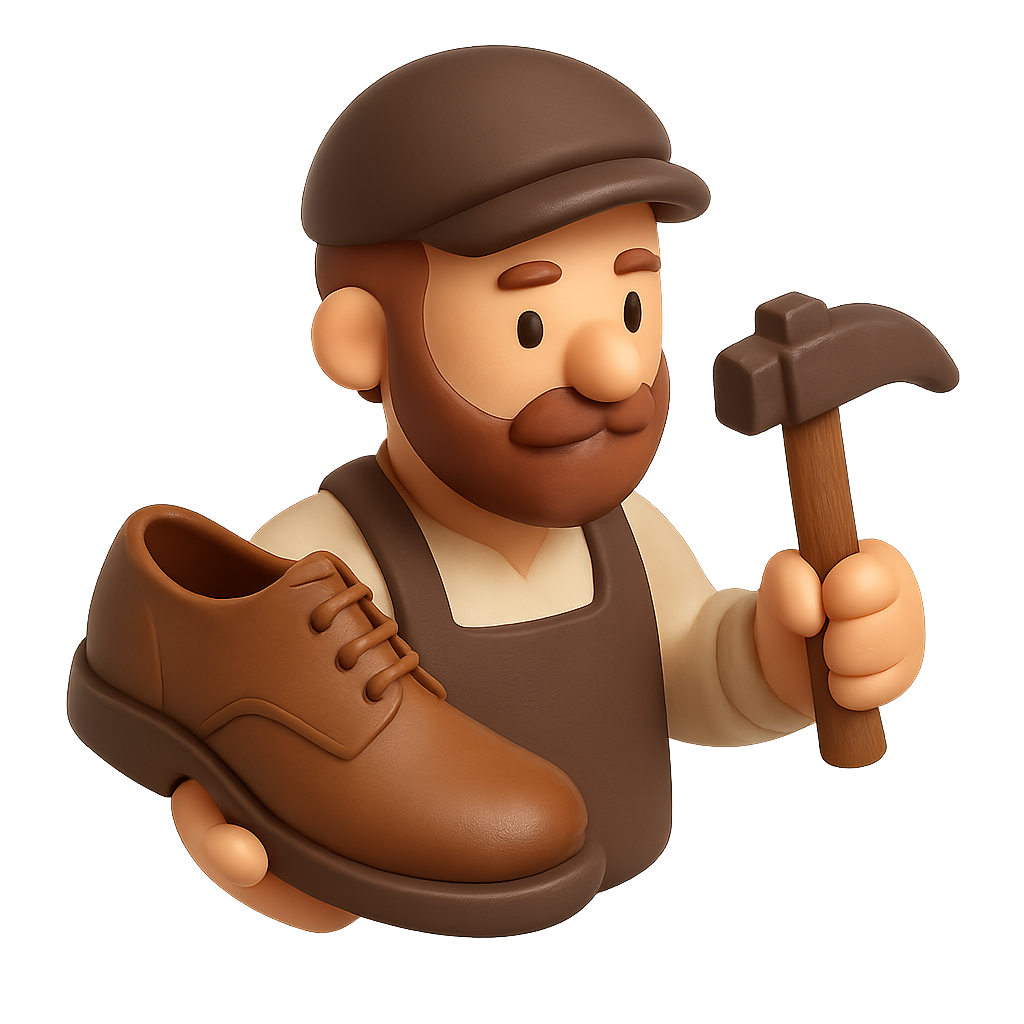 Isometric 3D Cobbler Icon with Shoe and Hammer